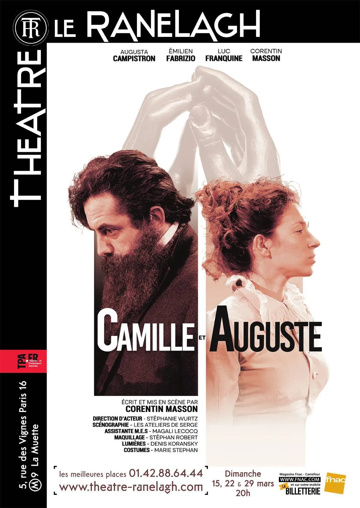 Tout sur scène nous transporte dans l’intimité d’un atelier du 19°siècle. Un grand poêle diffuse sa chaleur vacillante sur la grande verrière, draps, sellettes, mobilier d’époque nous glissent entre deux séances de sculpture et la lumière, dans une ambiance toute caravagesque, guide le regard de jardin à cour, de l’atelier de Rodin au modeste appartement de Camille. Une superbe écriture, une mise en scène millimétrée, des costumes magnifiques et une extraordinaire performance des comédiens. On rit, on se laisse emporter par la tendresse de Paul Claudel et d’André, on assiste impuissants à la souffrance, la déchéance, l’amour explosif de Camille et Auguste. Un silence impressionnant circule dans la salle, des gorges se nouent, les yeux rougissent, on glisse peu à peu vers les porte de l’enfer… 1h30 de pur bonheur, la salle applaudi à tout rompre, j’ai le souffle court.