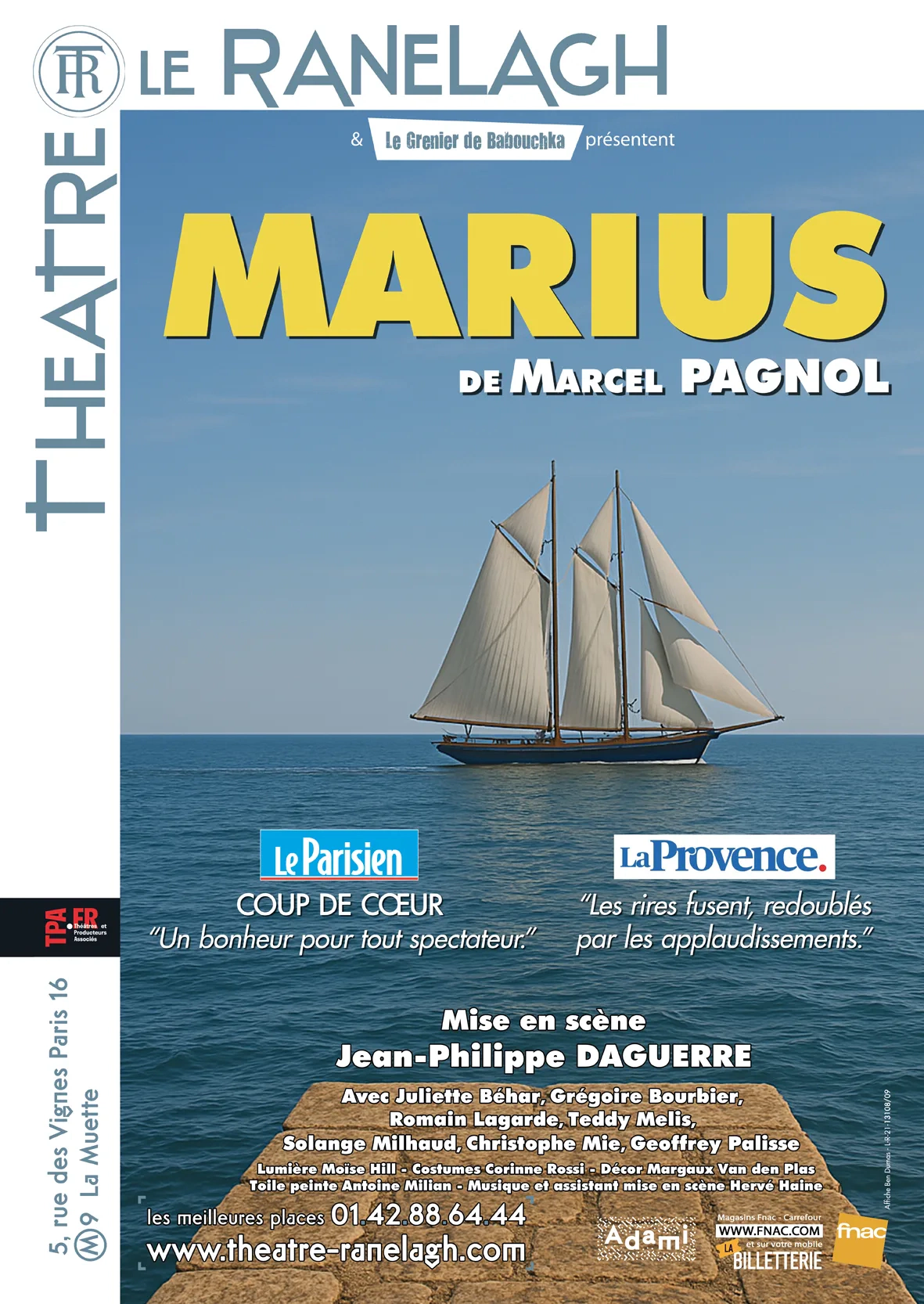 FRANCE 3 « Jean-Philippe Daguerre poursuit l’été au Ranelagh avec Marius, un hommage à la poésie de Pagnol… Une réussite ! »